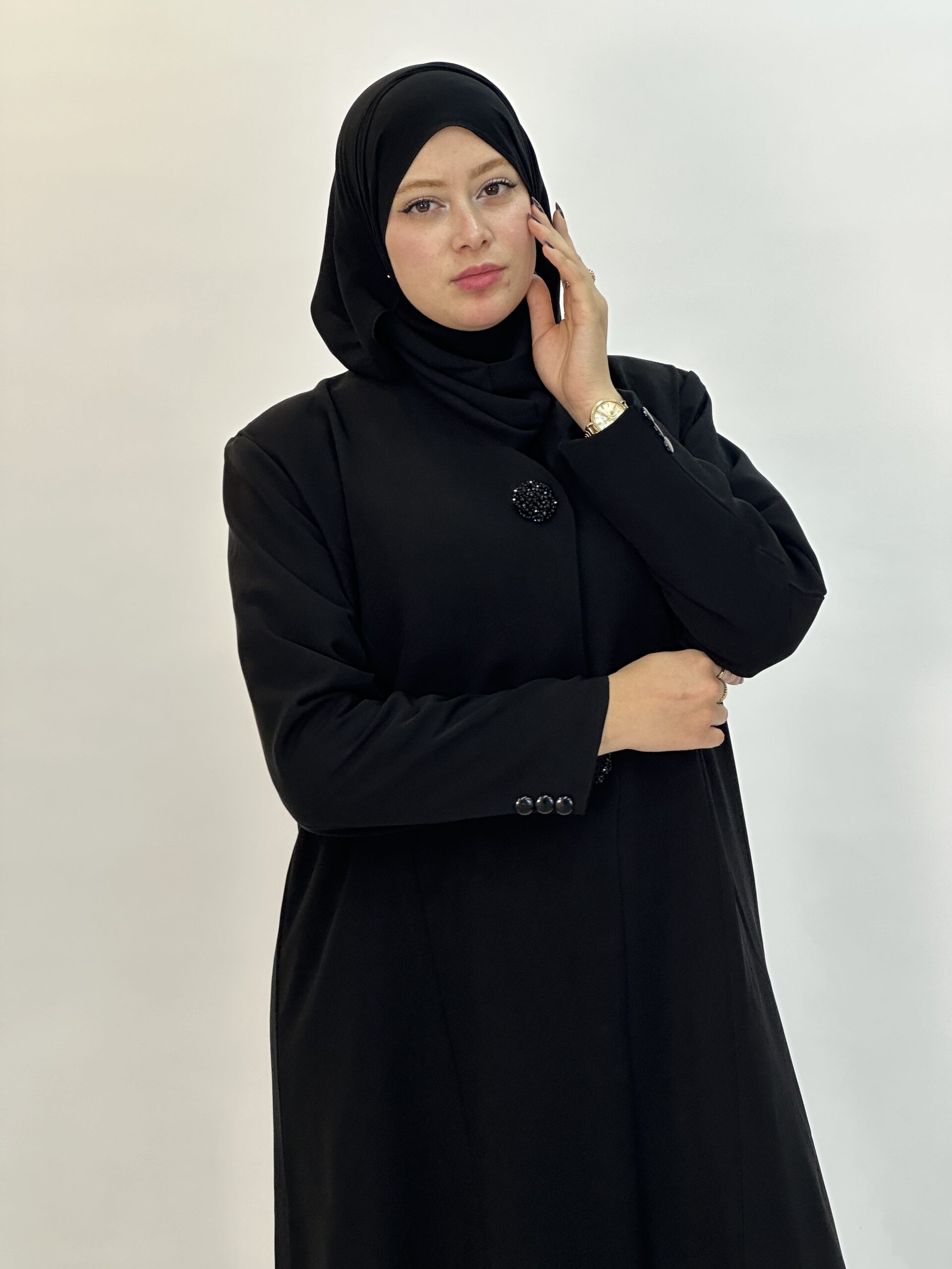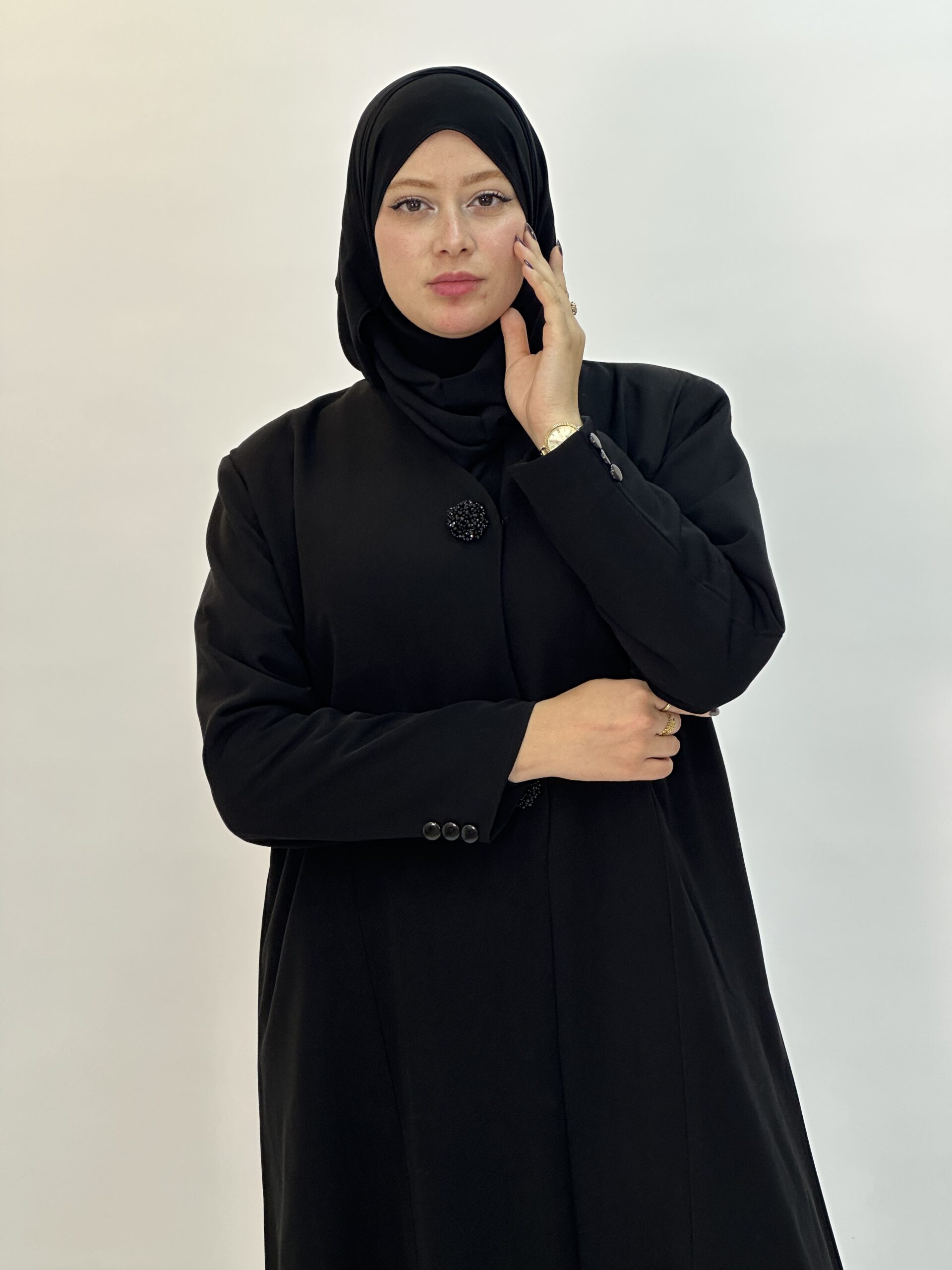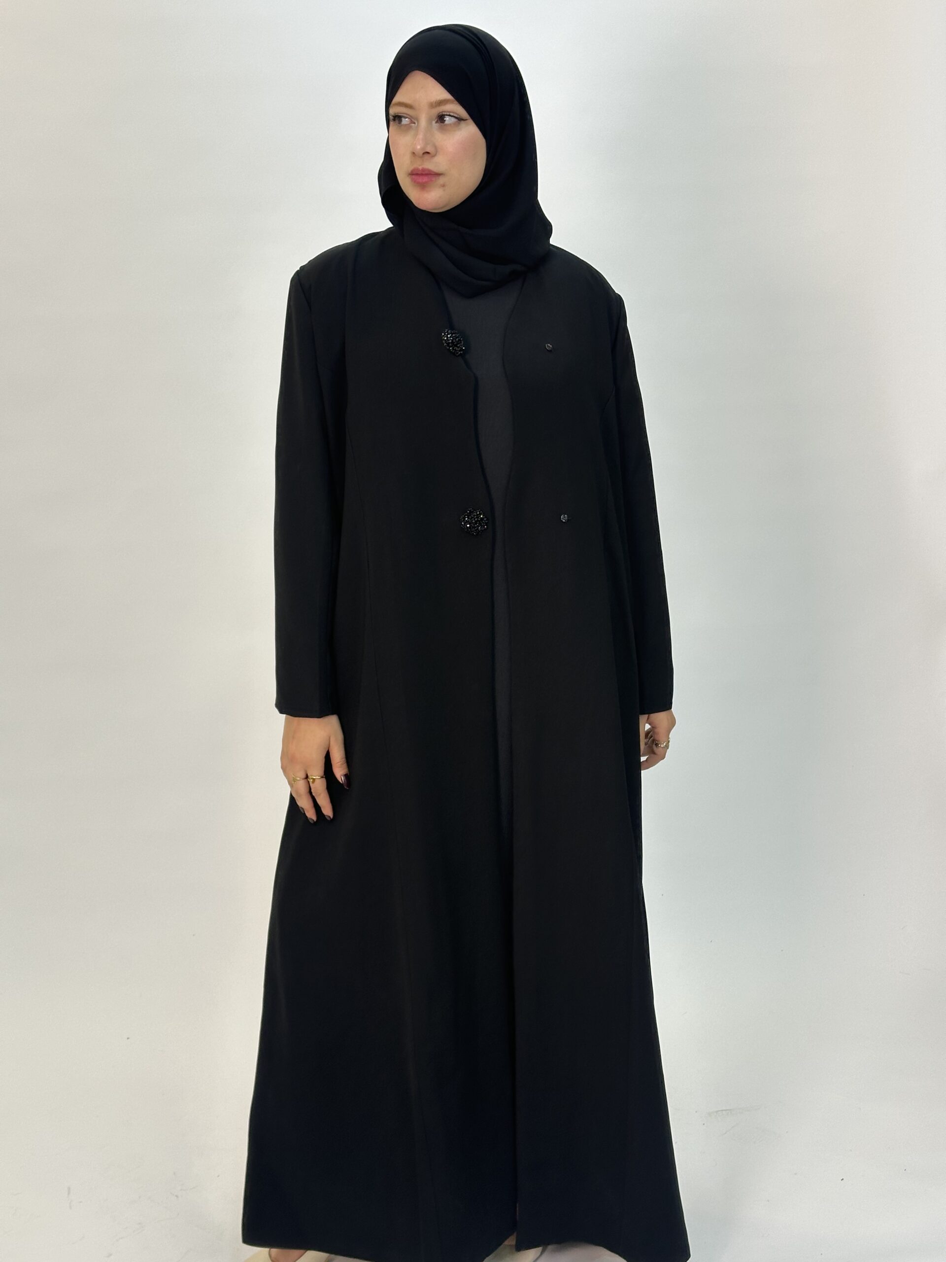 تجسيد للأناقة الهادئة والفخامة البسيطة، صُممت بعناية من قماش ناعم وانسيابي يمنح وقفة أنيقة وراحة مثالية عند الارتداء
